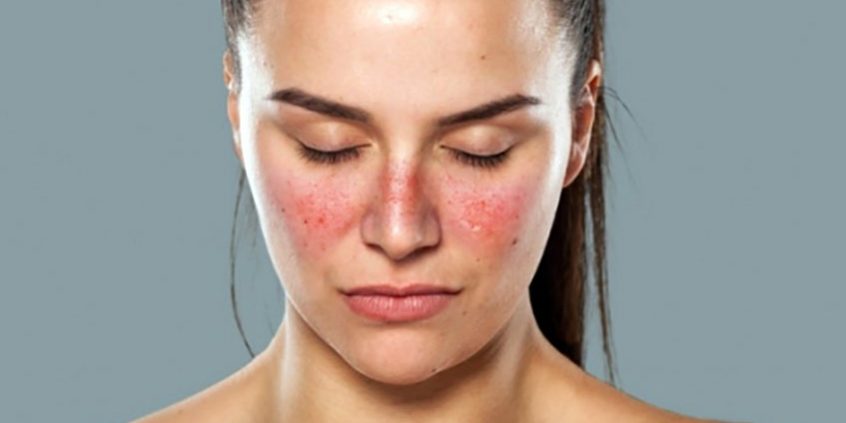 Dentre as lesões cutâneas, as mais comuns são as manchas vermelhas nas áreas da pele expostas ao sol, como rosto, orelha e o colo. Uma de suas principais características é uma mancha avermelhada nas maçãs do rosto e dorso do nariz, denominada lesão em asa de borboleta – seu contorno lembra uma borboleta.