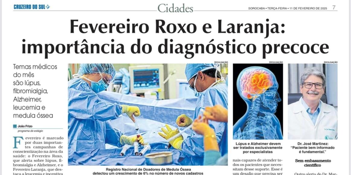 O presidente da Sociedade Brasileira de Reumatologia, Dr. José Eduardo Martinez, em entrevista ao Jornal Cruzeiro do Sul, de Sorocaba, alerta sobre os sintomas da Fibromialgia e do Lúpus e chama atenção para a busca precoce pelo atendimento médico. “Um paciente bem informado tem mais chances de obter um diagnóstico e tratamento eficazes”, alertou o especialista na reportagem. Leia a matéria na íntegra: https://www.jornalcruzeiro.