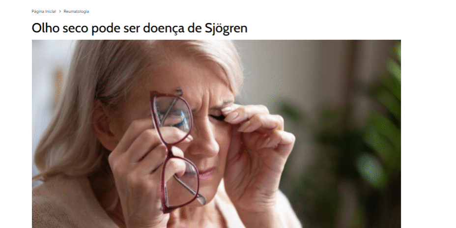 Olho seco e boca seca, quando persistentes, podem indicar a presença da doença de Sjögren, uma condição autoimune que pode afetar o organismo como um todo. O reumatologista Allison Pugliesi, da Comissão de Doença de Sjögren da Sociedade Brasileira de Reumatologia, em entrevista ao Portal do Drauzio/UOL esclareceu sobre a doença e seu tratamento. Confira a matéria completa em: Olho seco pode ser doença de Sjögren – Portal Drauzio Varella